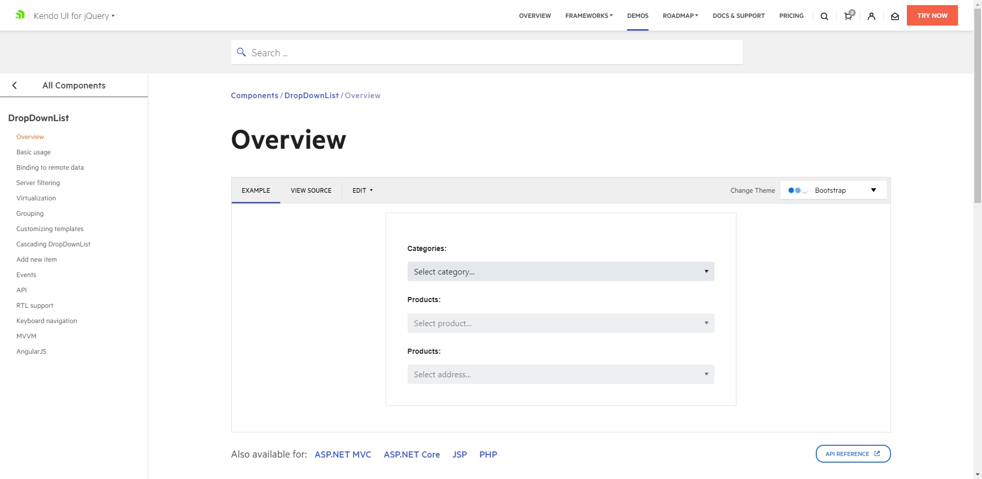 jQuery 기반의 환경에서 구성할 수 있는 Kendo UI 중 DropDownList에 대해 알아보도록 하겠다. telerik 사에서 제공하는 기본 예제들은 다음의 URL을 통해 확인할 수 있다. https://demos.telerik.com/kendo-ui/dropdownlist/index