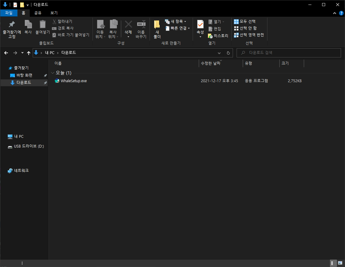 FileOutPutStream을 이용하여 지정한 경로(C:/Users/test/Downloads)에 지정한 파일명(WhaleSetup.exe)으로 다운로드를 시켜준다.