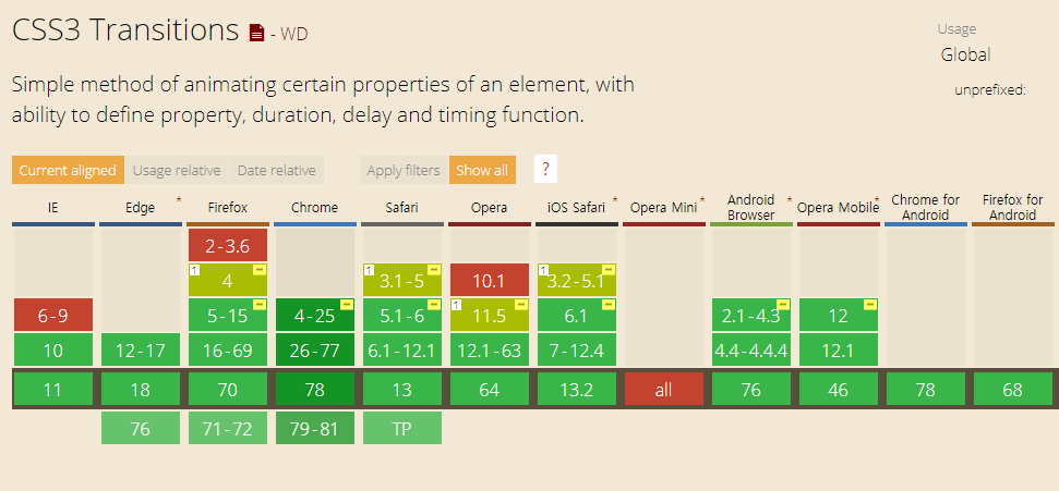 Transition은 IE브라우저에서 10이상부터 지원한다.